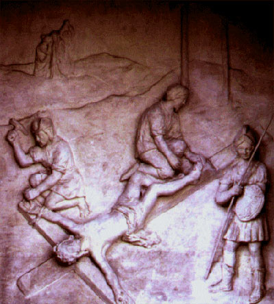 Terrakottarelief der 2.Station: Geißelung |