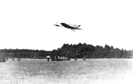 Einmotoriges Flugzeug beim Flugtag 1931 über dem Süchtelner Rennplatz |